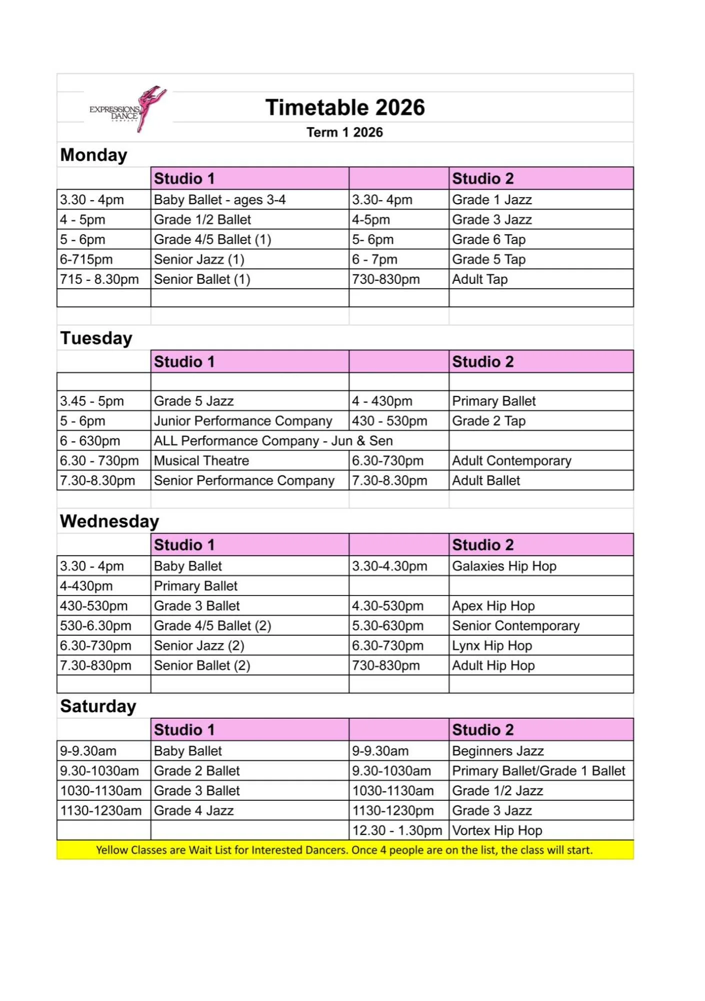 Our Timetable